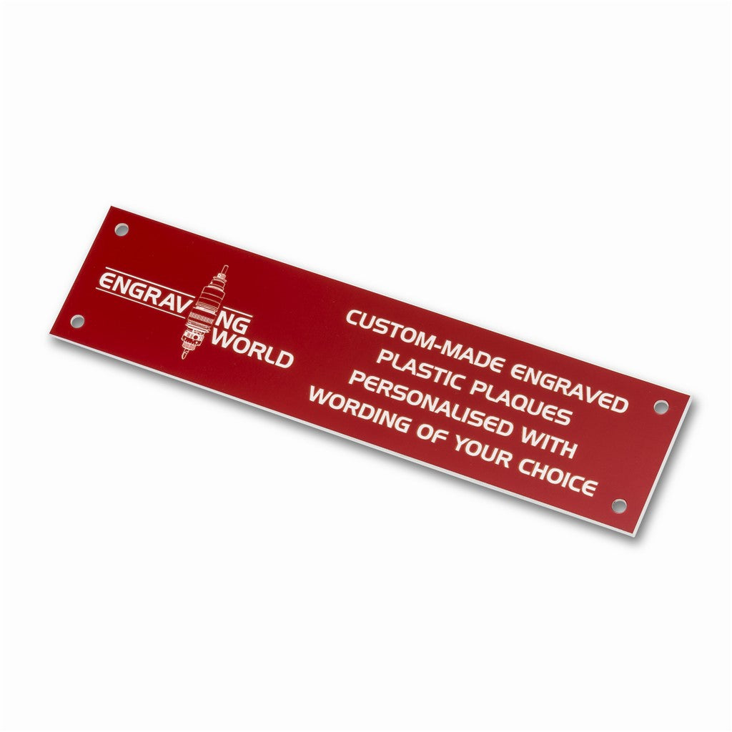 10" x 2" Personalised Engraving Engraved Sign Label Plate Plaque Signage Red/White