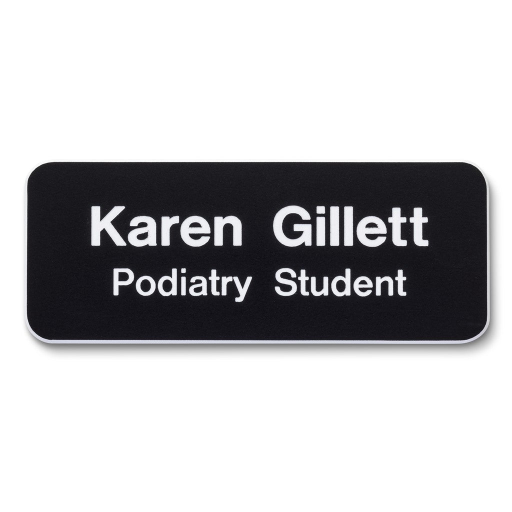 Personalised Engraved School Student Office Name Badge Pin Black/White