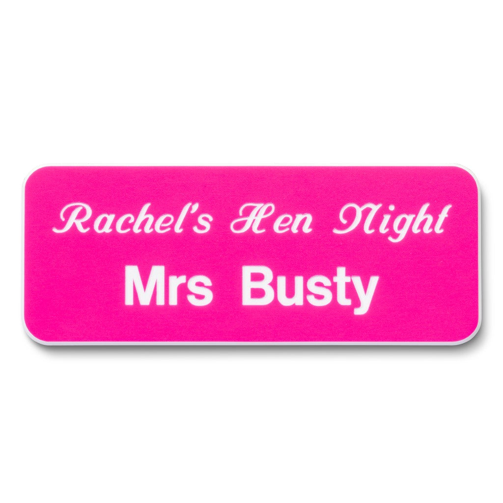 Personalised Engraved School Student Office Name Badge Pin Pink/White