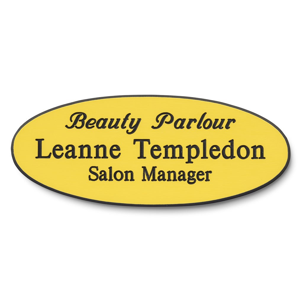 Personalised Engraved School Student Office Name Badge Oval Magnetic Yellow/Black